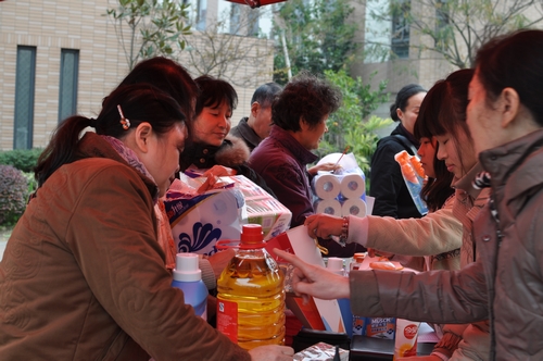 下午3点半不到,在官邸社区居住的数百名客户就已闻讯蜂拥而至,活动现场人虽多,但业主们却井然有序的排着队,等候着活动的开始。荆州人信汇为社区业主精心准备了与业主生活息息相关的食用油、卫生卷纸、洗衣液等日常生活用品。