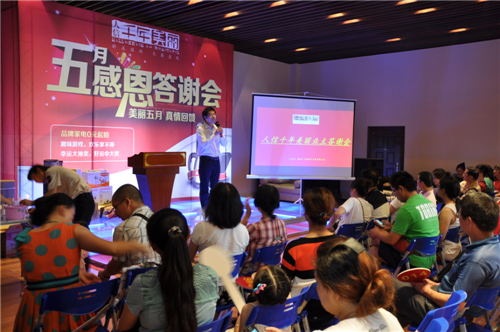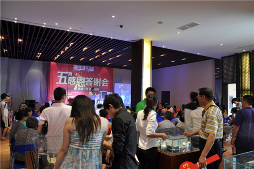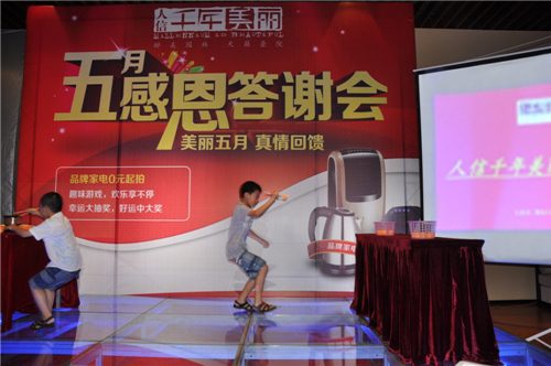上周六下午,人信千年美丽营销中心汇聚了100多组老客户家庭, 13:30时答谢活动准时开始。首先由项目销售负责人代表人信地产向老客户们致欢迎辞,紧接着是精彩的新品发布及2013年一季度老带新奖励通告,最后是激动人心的家电竞拍、以及游戏、抽奖活动。