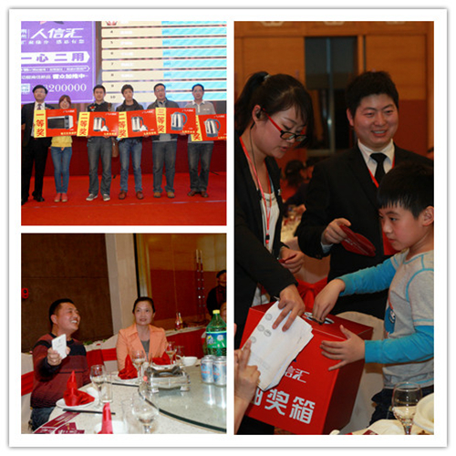 人信地产黎总及商业管理公司董总的激情演讲,得到了业主广泛的肯定和认同,纷纷翘首以盼,希望项目早日建成!接下来的有奖问答互动、微信摇奖、“老带新”客户颁奖、桌桌抽奖等环节让整个活动现场热闹非凡,互动中还有个7岁业主小朋友深情的演唱了一首感人至深的歌曲《父亲》,结束时小朋友一句“我爱爸爸、我爱人信汇!”的话语,将整个活动推向了高潮,真切的情感,感染了在座所有的人!随后由人信地产区域营销黎总、商业管理公司董总为2013年度荆州人信汇“老带新”获奖的老业主颁奖,并合影留影。在“老带新”互动宣传环节,随着陈阿姨台上响亮的回答“1000元购物卡!”现场的气氛顿时沸腾起来!在场的所有业主们纷纷活跃起来,现场就开始咨询具体的奖励细则。陈阿姨得到礼品后激动地说“我是第九次参加人信汇举办的活动了,每次都很开心,老带新活动我都参加2次了,得了两张千元的购物卡,让我感觉到人信汇真真正正的把客户放在心里,祝愿人信公司发展越来越好!”在欢乐和谐的气氛中,人信地产领导向每一座的来宾敬酒送祝福,业主们也纷纷表达对人信地产的感谢和美好祝愿!业主临走时,活动主办工作人员的亲切道别,都给业主留下了深刻的印象!整场活动满满的都是爱!