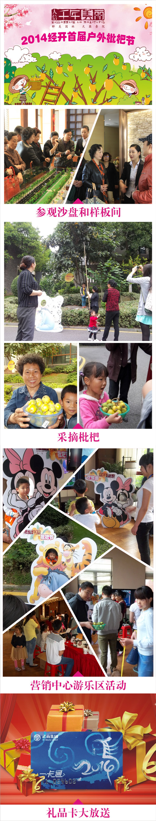 5月17日,2014经开首届户外枇杷节在享誉华中最美别墅之称的人信•千年美丽园林盛大举行。意趣采摘、园林寻宝、体感游戏大赛及马克杯DIY留影等众多精彩纷呈的环节让近百组业主家庭乐不思蜀。