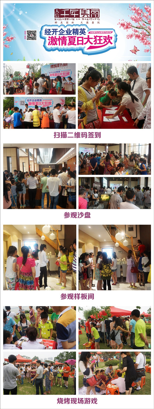 作为热销经开的醇熟大作,人信•千年美丽引人关注的除了唯美诗意的社区环境与历久弥新的大牌品质之外,当属千年美丽为沌口企业精英们定制的精品户型,本次夏日户外狂欢的首个亮点即是千年美丽明星户型鉴赏之旅。无论是空间的拓展性与细节的呈现度都成为到访青年们议论的热点。此外尤为大家期待的还是户外BBQ烧烤。千年美丽为前来现场的中航精冲员工们备好了各类食材、专业工具及指导老师,从服务细节上让到场的嘉宾感受到贴心的品牌关怀。热辣烧烤之后,现场K歌争霸环节更是年轻员工们的“大爱”,大家欢畅的歌声与现场此起彼伏的欢呼声将千年美丽湖岸樱园变成了经开青年们的假日欢乐地!如果您也想参加人信•千年美丽的精彩周末活动,可以通过微信(人信千年美丽)、微博(武汉人信千年美丽)或活动热线(027-69708888)关注我们和报名,实时了解人信•千年美丽的活动预告。无论是在湖岸边奢享一场味蕾之旅,还是在经开最美江南园林里纵情漫步,千年美丽时刻为您备好最佳的人生姿态与最美的生活风景。