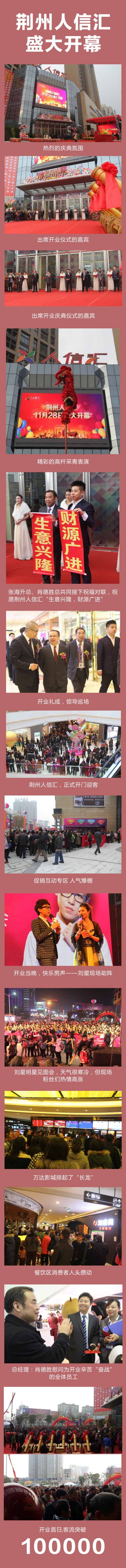 历经一年多时间的建设及筹备,荆州人信汇在集团领导的指导下、各部门的帮助下、荆州商管公司全体员工及项目公司全体员工的“艰苦奋战,通力协作下”圆满完成开业。