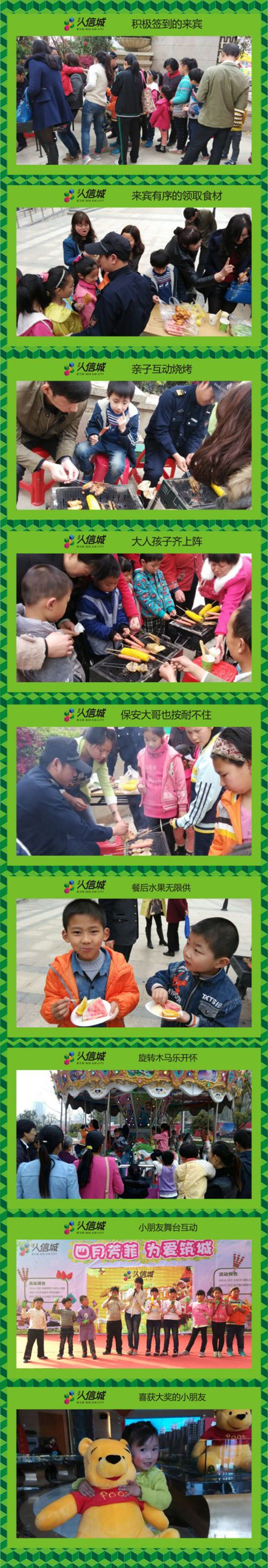 由于是亲子踏青自助烧烤活动,活动还未开场,穿着可爱亲子装的客户已经全家总动员,一场别具一格的春日盛宴就此拉开了序幕。路边的行人也被气势吸引而来迅速集结成一支次序井然的队伍,开始有条不紊的排队领取烧烤食材。作为本次“踏青烧烤节”的主办方,黄陂人信城出手可谓是相当“阔绰”,从丰富的肉类食材到可口的玉米、新鲜蔬菜,更有水果沙拉、各式饮料海量供应,让现场客户迫不及待的想要投入到烧烤阵营当中。在现场有爸爸亲自向儿子传授独门烧烤秘籍,这样父子情深的画面羡煞旁人;有按捺不住技痒的保安大哥充当烧烤师傅开始了跨界演绎;还有小朋友们吃得不亦乐乎而露出可爱的笑容。活动现场瞬时变为一片欢乐的海洋,“踏青烧烤节”为黄陂人民带来了美食与快乐,更带来了久违的亲子时光。
