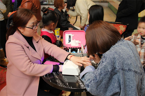 美妆之后便是美甲,小小的十片指甲在美甲师的修饰下瞬间夺人眼球。不一样的图案,不一样的装饰,纤纤玉指绽放着不同的时尚与浪漫气息。一次与众不同的美妆美甲体验为前来参加活动的女士们带来了一份清爽快乐的心情,看着与往常不一样的自己,心里感觉美美的,连带着看房的心情也格外的好。
