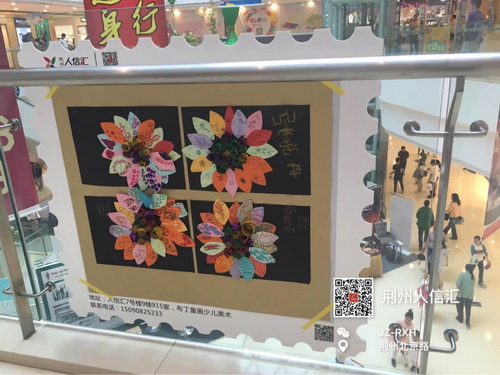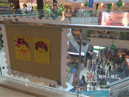 可玩、可赏、享优惠。人信汇还联合自有住宅楼里面的商业资源--布丁童画少儿美术机构在二楼中庭围栏开展小型画展,既利用了围栏包装,也做了商户展示,更是烘托了节日气氛。让整个人信汇充满了童真童趣。