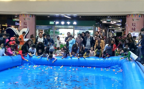 本次活动分成人组与儿童组,成人组钓真鱼,儿童组钓塑料玩具鱼,满足全家需求,真正的全家齐上阵。规则也很简单:顾客扫描人信汇公众号登记后,即可报名参加,工作人员吹口哨捕鱼开始,1分钟后,捕鱼游戏结束,比比看谁钓的鱼比较多,钓的所有鱼客户们都可以带回家。而除了可以把钓到的鱼带回家,活动还为各个组设立了名次和奖品。