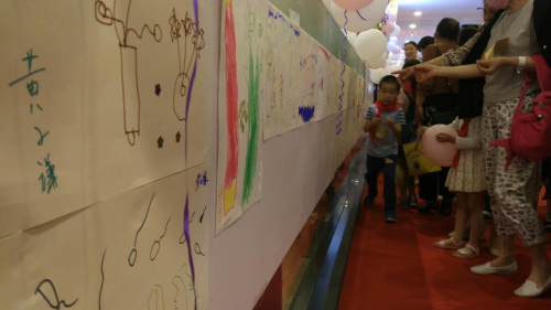 而520当天在荆州人信汇除了朗读者活动还有另外2场活动,一个是在2楼儿童业态区域举办的少儿涂鸦大赛。孩子们现场创作自己涂鸦作品并在橱窗进行展示,吸引众多家长及其它消费者驻足观看评论。