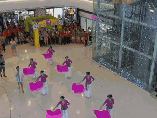 随着人群中歌声的响起,红歌快闪活动拉开了帷幕。来自社区的各个表演团队,在人信汇各个角落上演红歌。