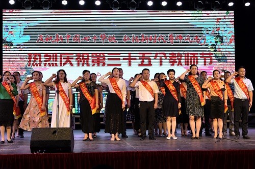 获奖教师及红星路小学师生表演的《初心无悔 甘为人梯》、黄家塘小学表演的舞蹈《为梦飞翔》讴歌了全区教师默默耕耘、无私奉献,用爱心、知识、智慧点亮学生心灵的崇高师德,弘扬了尊师重教的良好风尚,展现了广大师生锐意进取、昂扬向上的精神风貌。沙市一中特级教师许菁带领所有获奖老师宣誓:我志愿成为一名光荣的人民教师,忠诚党的教育事业,遵循党的教育方针,遵守国家教育法律,履行教书育人职责,有理想信念、有道德情操、有扎实学识、有仁爱之心。为国家富强、民族振兴、人民幸福而不懈努力奋斗!