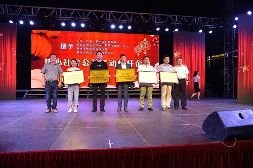 本次活动得到了许多支持教育、关心教师、热心公益的企业大力支持,现场授予人信•悦玺、新东方荆州学校、湖北洈水运动休闲小镇研学营地(中心)、荆州市教育国际旅行社、荆州大铭文化传媒有限公司“热心社会公益活动标杆企业”称号。代新堂、史少雄为他们授牌。