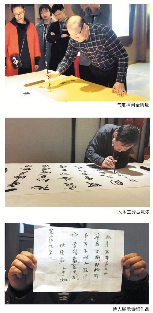 从景中回返,诗人们投入热情的创作中,创作后由专家评委现场点评,评选出的优秀作品由孙贤坤、孟修祥、张辉光挥墨留存。