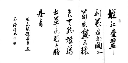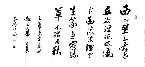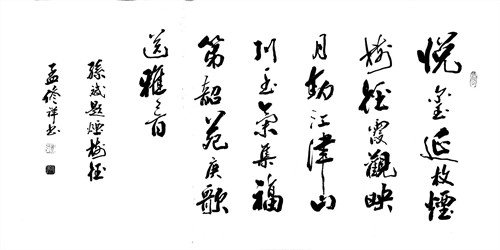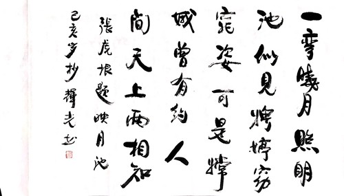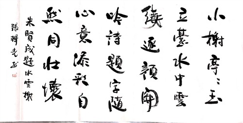 这次活动是一次将诗词书法文化与建筑艺术有机结合的良好实践,也是一次把诗词书法这种高雅艺术送到居民门口的良好示范,可以说是荆州诗词界,书法界与建筑界联合弘扬国粹的创造。活动花繁,感慨良多,最后以自己的一首诵江山八境的七绝《水云榭》结言: