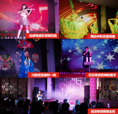 9月22日,为与广大业主共贺2012龙年中秋佳节,人信·假日威尼斯特举办了一场以“金秋团圆 豪门盛典”为主题的全明星表演盛会。近400位来宾莅临营销大厅,现场一派欢腾。激情洋溢的电提表演、艳惊四座的川剧变脸、让人捧腹大笑的摇滚串烧、神秘莫测的魔术表演、荟萃传统特色的猜灯谜游戏,还有一轮轮令人兴奋的幸运大抽奖,规模空前的娱乐阵容让观众的欢笑声、惊赞声充溢着整个社区。