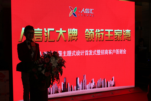 2013年3月28日下午,汉阳人信汇商管公司“人信汇大牌·领衔王家湾”情景主题式设计首发式暨招商客户答谢会于项目营销中心一楼大厅举行,伴随着优雅的音乐与精致浓郁的茶香,华润苏果超市武汉区域代表、星巴克武汉区域代表,以及来自各行各业100多位商家、多家主流网络媒体莅临现场,汉阳人信汇与地铁3号无缝接驳的“地铁潮流街”个性、前卫、潮流、时尚、原创的的设计理念和招商运营模式得到了各界商家的盛赞。