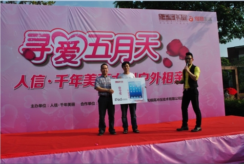 此外,户外寻宝、8分钟约会、水杯传情、歌词大接龙等趣味互动游戏让到场的男女嘉宾们在短短2个小时内就彼此了解和熟悉了,大家玩得不亦乐乎。最后,在嘉宾们的欢呼声中,主持人邀请主办方领导上台抽取了本次活动的幸运大奖,奖品是由人信•千年美丽提供的Ipad mini一台。其他游戏环节胜出的嘉宾也分别获得了大小不一的精美奖品。