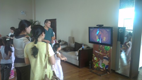 当天正值星期日,延续着前一天儿童节的欢乐,人信•千年美丽聚满了30多组新老客户家庭。活动原定于下午14:00开始,结果13:00不到已有小朋友们早早到场。现实版愤怒的小鸟引来了众多孩子甚至是家长们的围观,大家都迫不急待的等活动开始一试身手;水果忍者体感游戏也非常有趣味,引来了一批5-8岁大童们的哄抢;趣味沙画游戏得到了不少幼儿家庭的喜爱,家长带着孩子手把手的教他们用沙填画,既培养了孩子们的想象力和创造力、也增强了孩子和家长之间的情感交流。这些趣味无穷的游戏,让孩子们玩得不亦乐乎,大人们也深受感染,随着孩子们一起尽兴,整个下午营销中心充满了活力和欢笑,好一个温馨快乐的周末时光!