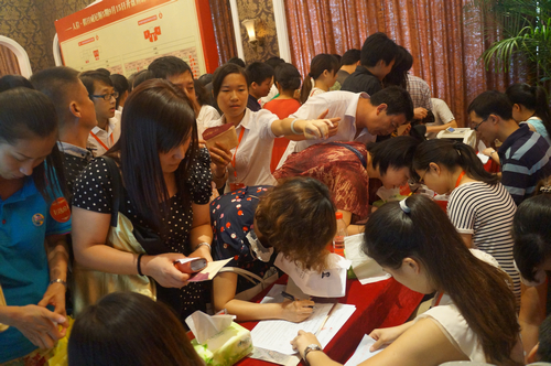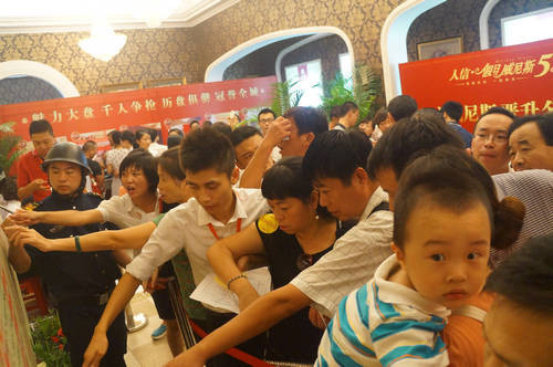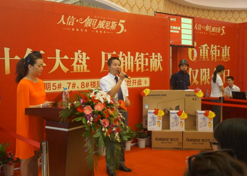 开盘当日上午8点不到,人信•假日威尼斯现场早已人声鼎沸,参与开盘活动的客户车辆在营销中心门口沿街排起的长龙,蔚为壮观。不少购房者更是亲朋好友全家出动,组团抢购房源。9点18分,主持人一声“开始摇号!”的话音,将整个开盘活动推向了高潮!选房区,被幸运摇到号的准业主们以当仁不让的劲头一气呵成完成选房、缴款和签约;等候区,更多还没摇中自己号码的购房者们则无比紧张而焦急地等待着,生怕自己期待已久的房子被提前挑走……不到2个小时,本批次开盘房源即被抢购殆尽!