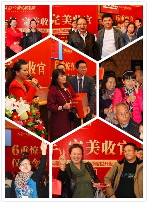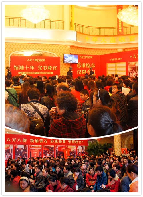 开盘当日,数百名新老客户齐聚营销中心,车水马龙,人潮涌动,男女老少全家动员,激情盛况有如过节聚会。摇号开始,全场气氛紧张而激动,摇中者举家欢喜,落选者紧盯摇号箱,随时准备开跑抢房。小小的乒乓球牵动着全场每个人的心,将整个开盘盛会推向一个又一个高潮。