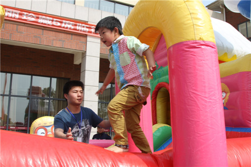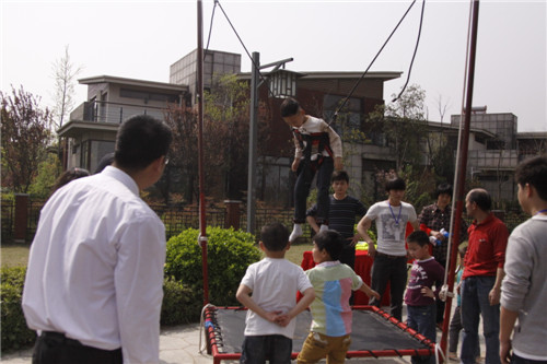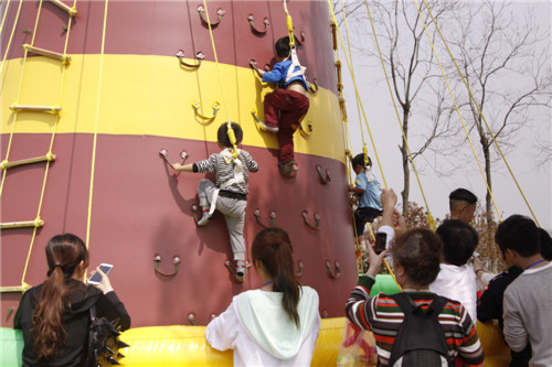 和上周甜蜜有趣的草莓节不同,这次的大冲关挑战赛活动更加激发了小朋友们的勇气和毅力。第一关卡通城堡设在营销中心广场,小朋友们要冲破城堡内的重重关卡才能通关并赢取相应积分;第二关和第三关设在人信·千年美丽竹林外湖边的樱花园,小朋友和家长可乘坐电瓶车一路游园参观后抵达。小朋友们一一闯过第二关 “趣味攀岩”、第三关“冒险蹦极”玩得不亦乐乎,家长们则一旁陪伴一边欣赏着千年美丽知音湖畔秀美的园林春色,好一幅热闹温馨的亲子踏春图。