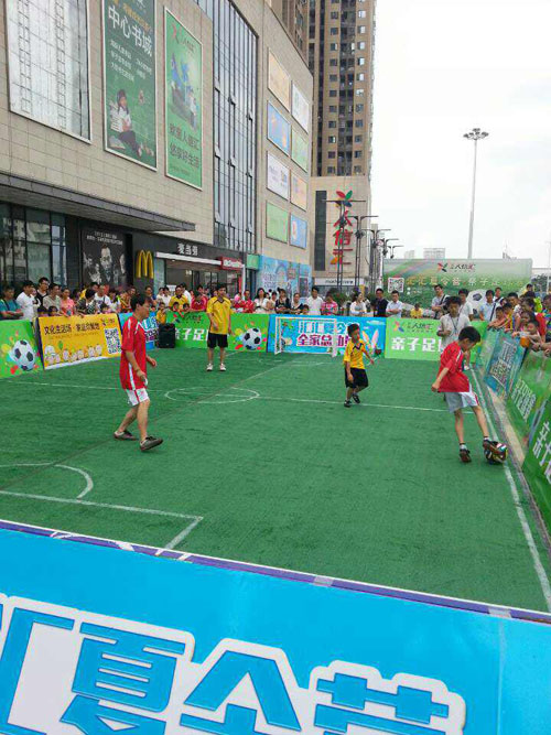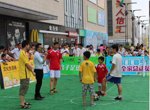 7月13日,世界杯决赛前夕,汉阳人信汇购物中心激情上演“汇汇夏令营/亲子足球赛”活动,近30多对父子兵共同演绎了一场绿荫亲子,好一场《爸爸去哪儿》真人秀。