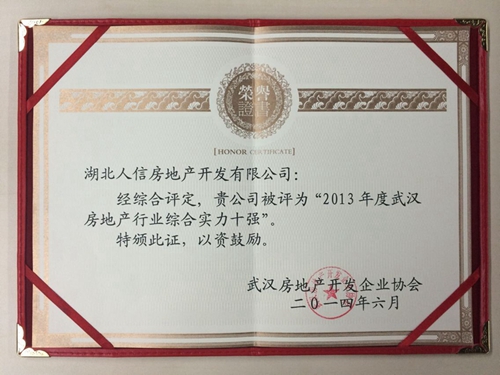 近日,武汉房地产开发企业协会正式公布了 “2013年度武汉房地产开发行业综合实力20强”的评比结果,湖北人信地产再次荣登20强,并且综合实力排名由2012年度的第11位上升至第9位,正式跻身武汉地产十强行列。