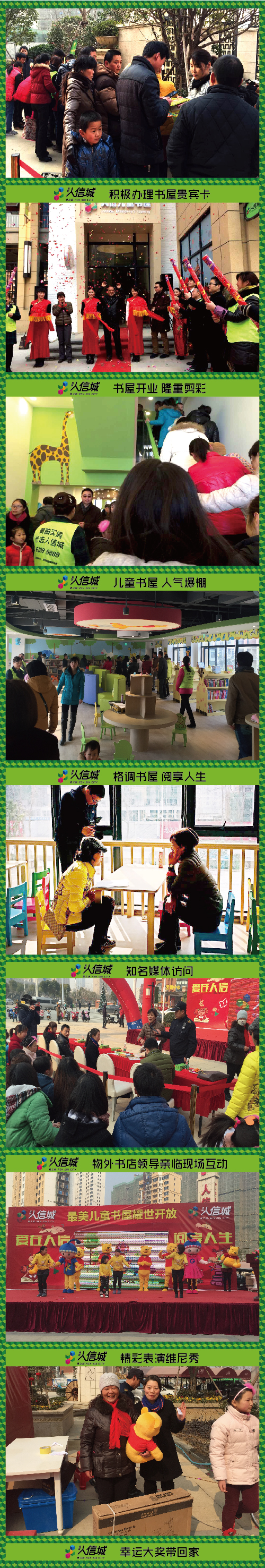 元月31日被誉为中国最美书店--惊艳全城,造武汉文化新地标的人信物外的开业;时隔仅一周,人信旗下同系文化书店、首家儿童书屋在黄陂人信城耀世启幕。开业当天,黄陂区热情的百姓感受到与国际同步的儿童阅读文化,更有知名教育专家、武汉物外有限公司总经理陈富珍老师倾情助阵,讲解亲子教育之道,为到场的孩子和家长带来了一场文化盛宴!