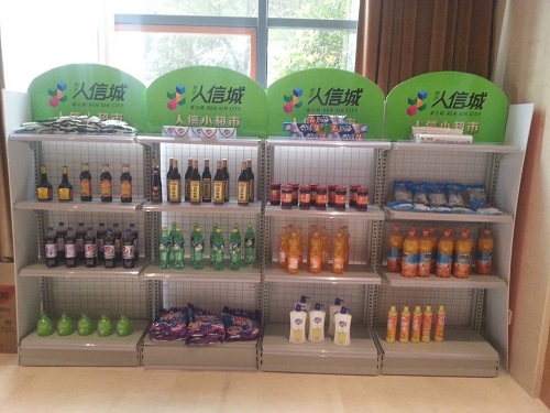 这个周末的荆沙•人信城营销中心,与往日有了些许不同,原来,工作人员把微超市带进了营销中心,一排排整齐的货架上摆满了厨房用品、日用百货、休闲零食等,购物篮、扫码结账系统也有序的安放在一旁。