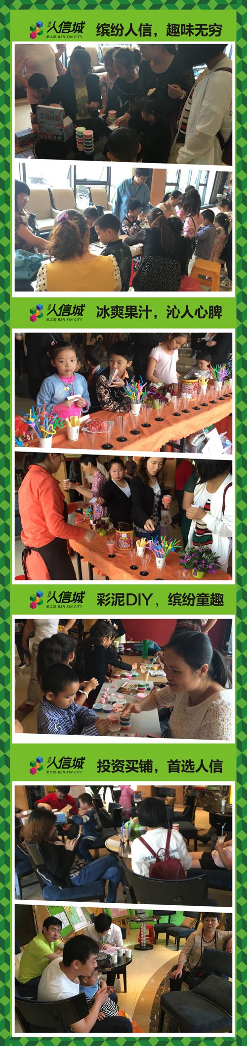 在炎热的夏天,到处充满着浮躁的气息,唯独孩子,依然沉浸在他们的色彩中,让我们感受到这一抹的沁人心脾。彩色印泥,不仅是孩子们最爱的玩具,也是孩子们创造自己世界的工具,他们会亲手捏制各式各样形状的作品,在他们的世界中任意驰骋。上周末5月28日,黄陂人信城就特意为广大客户准备了彩色印泥DIY活动,让大家度过一个快乐的周末。