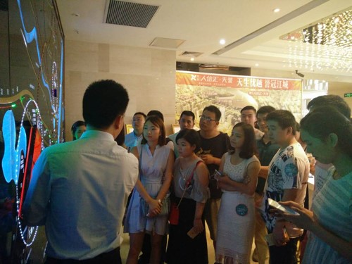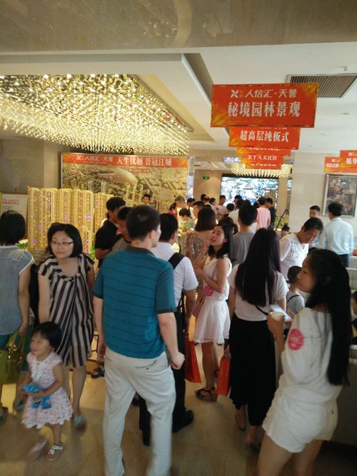 (充满爱与情怀的汉阳人信汇•天誉,嘉宾纷纷上前向销售人员了解项目信息。)