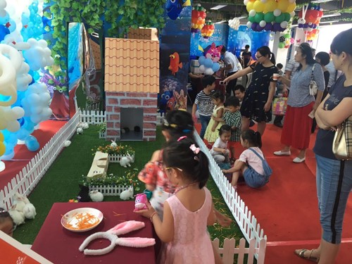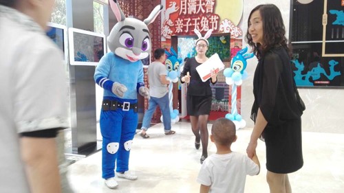活动现场张灯结彩,【鲸游馆】门口摆放着巨型玉兔,朱迪尼克造型人偶热情迎宾,馆内各式各样气球造型装饰,戴着兔耳朵的工作人员穿梭其中,一只只可爱的小兔子在笼子里“含情脉脉”的期待着新主人......浓浓的节日气氛感染了每一位来宾,众多互动活动为大家带来一场趣味横生的中秋之旅。