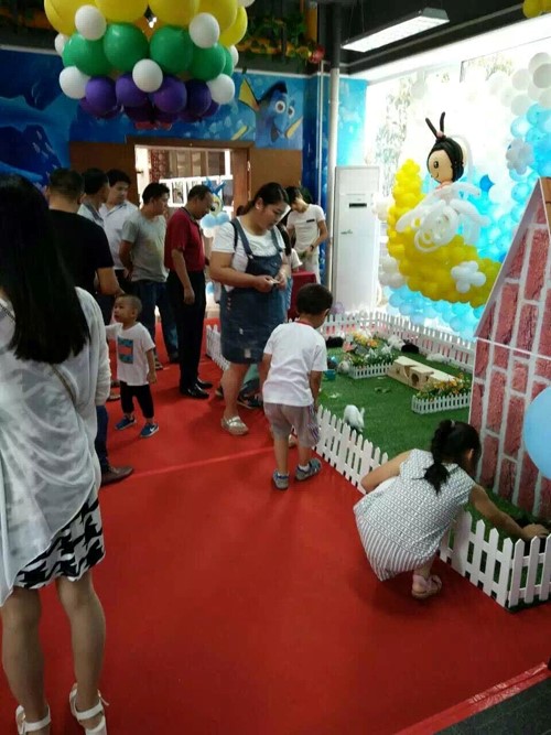 工作人员特意设置了“亲子玉兔园”,让客户一家老小都能体验一番饲养之乐。