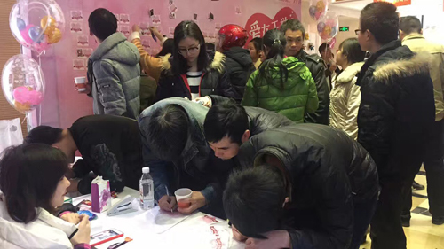 参加活动的嘉宾们陆续到达活动现场,签到并领取甜蜜糖果礼盒、缘分卡和玫瑰花等物品,现场气氛火爆。当工作人员将嘉宾们的照片及个人信息张贴到缘分墙上后,现场不少嘉宾围观并寻找最有眼缘的那个TA。